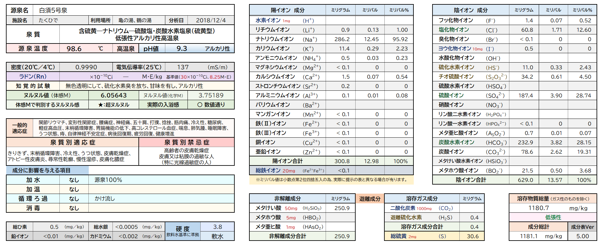 アルカリ性イチオシヌルヌル完全源泉かけ流し宮城県炭酸水素塩泉硫酸塩泉硫黄泉(硫黄型)稀少泉質鳴子温泉 アルカリ性 2023.11.292025.10.24 旬樹庵 琢ひで ※2025/10/24 ヌルヌル値付き(5.00)の成分表へ一部切り替えました。 番号 062 県市 大崎市 基本情報 成分表1 成分表2 成分表3 成分表4 成分表5 総評