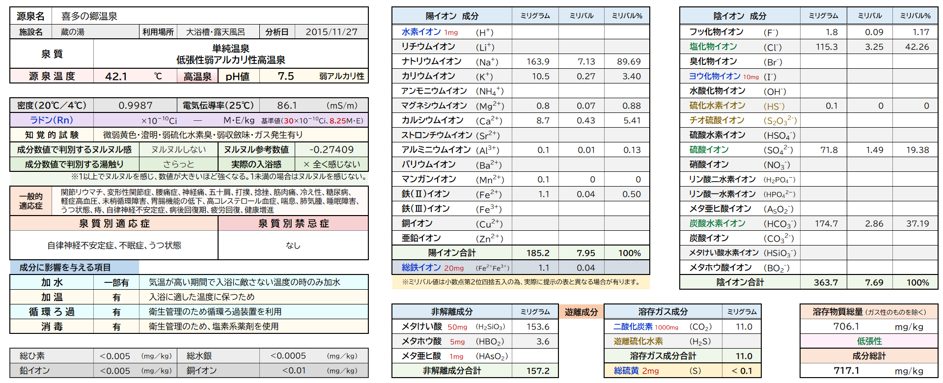 塩化物イオンが8,500を超え、尚且つナトリウムイオンが5,500を超えた場合は『強塩泉』となる。 源泉を舐めるとかなりの塩味を感じ、海のような濃さの温泉もある。 強塩化物泉と記載されていた場合は、外でのキャンプなどを除き、相当にべた付くので洗い流した方がいい。