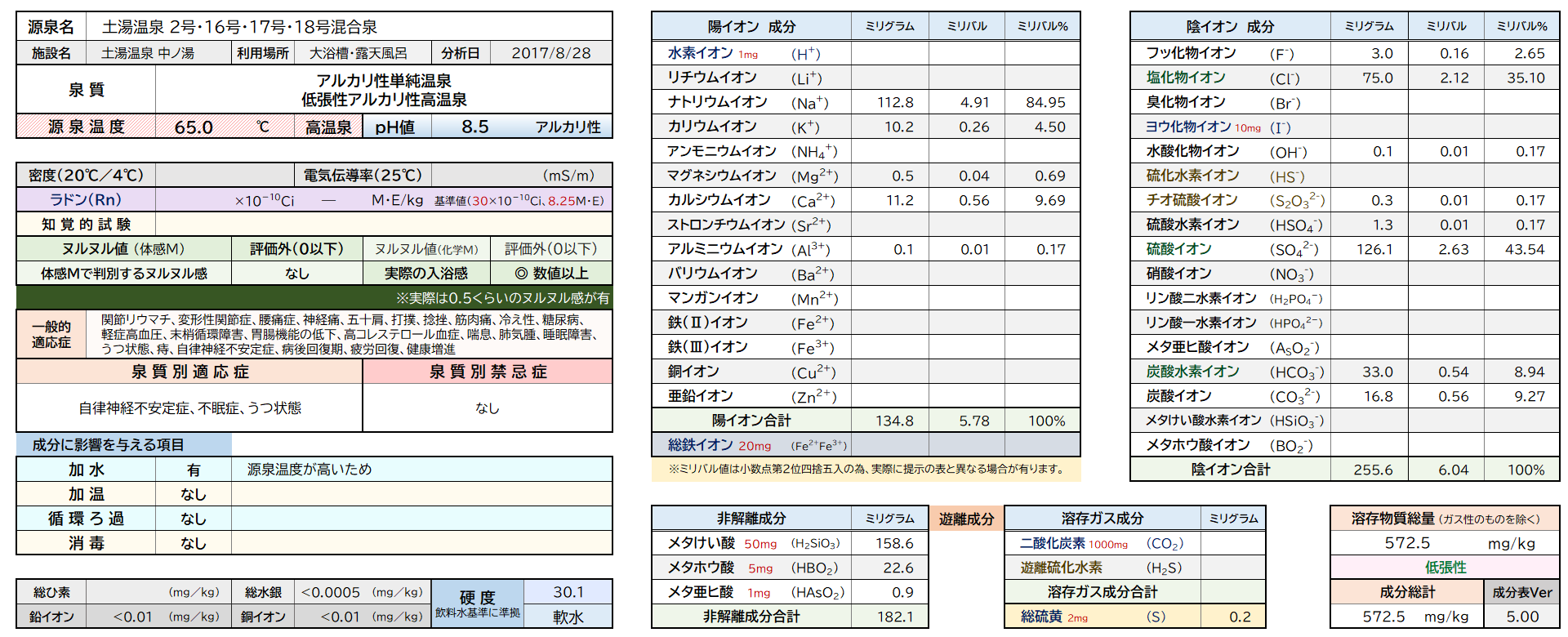 アルカリ性ヌルヌル単純温泉土湯温泉塩化物泉炭酸水素塩泉硫酸塩泉福島県 露天風呂 アルカリ性 2025.09.262025.10.24 土湯温泉 公衆浴場 中之湯 ※2025/10/24 ヌルヌル値付き(5.00)の成分表へ切り替えました。 番号 148 県市 福島市 基本情報 成分表1 成分表2 成分表3 成分表4 成分表5 総評