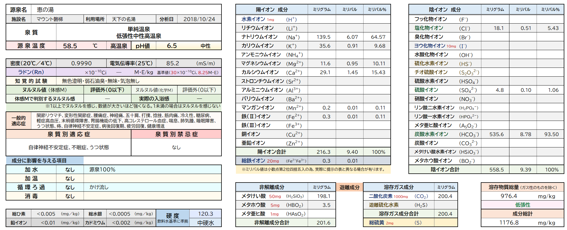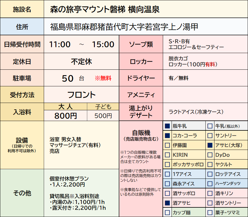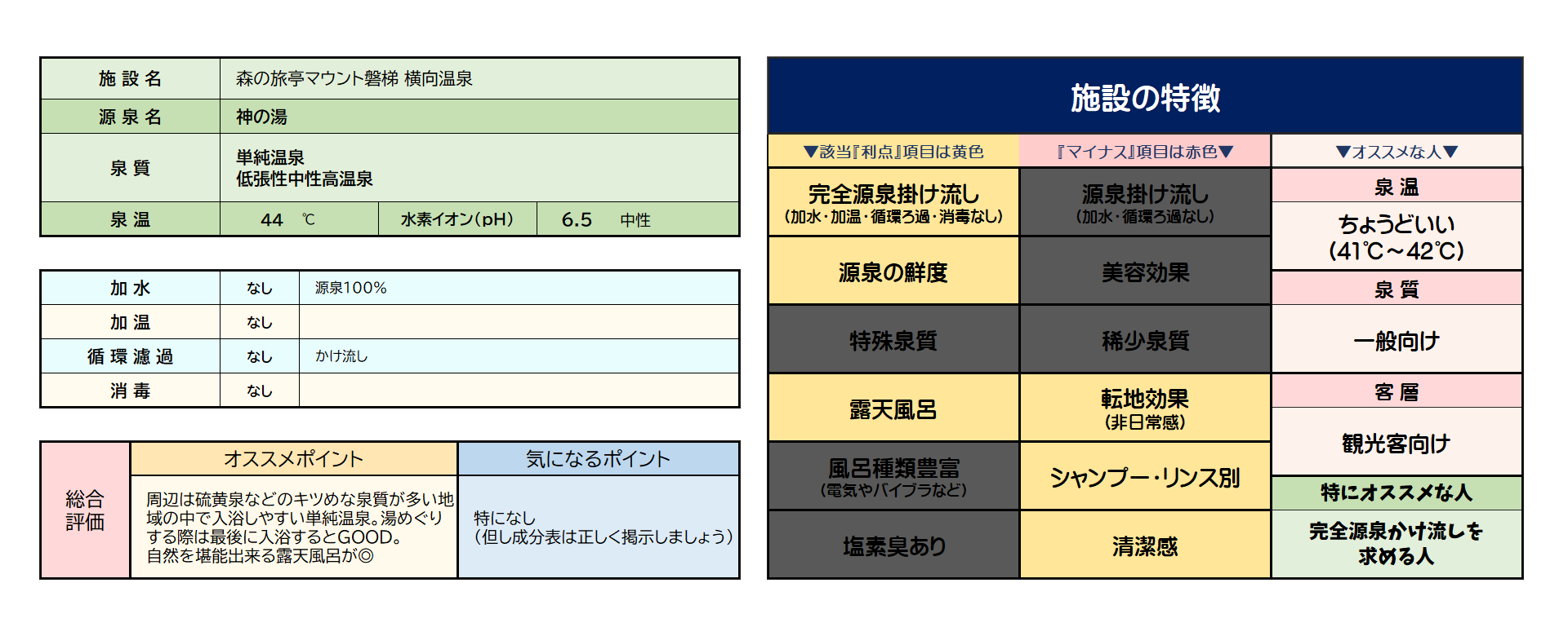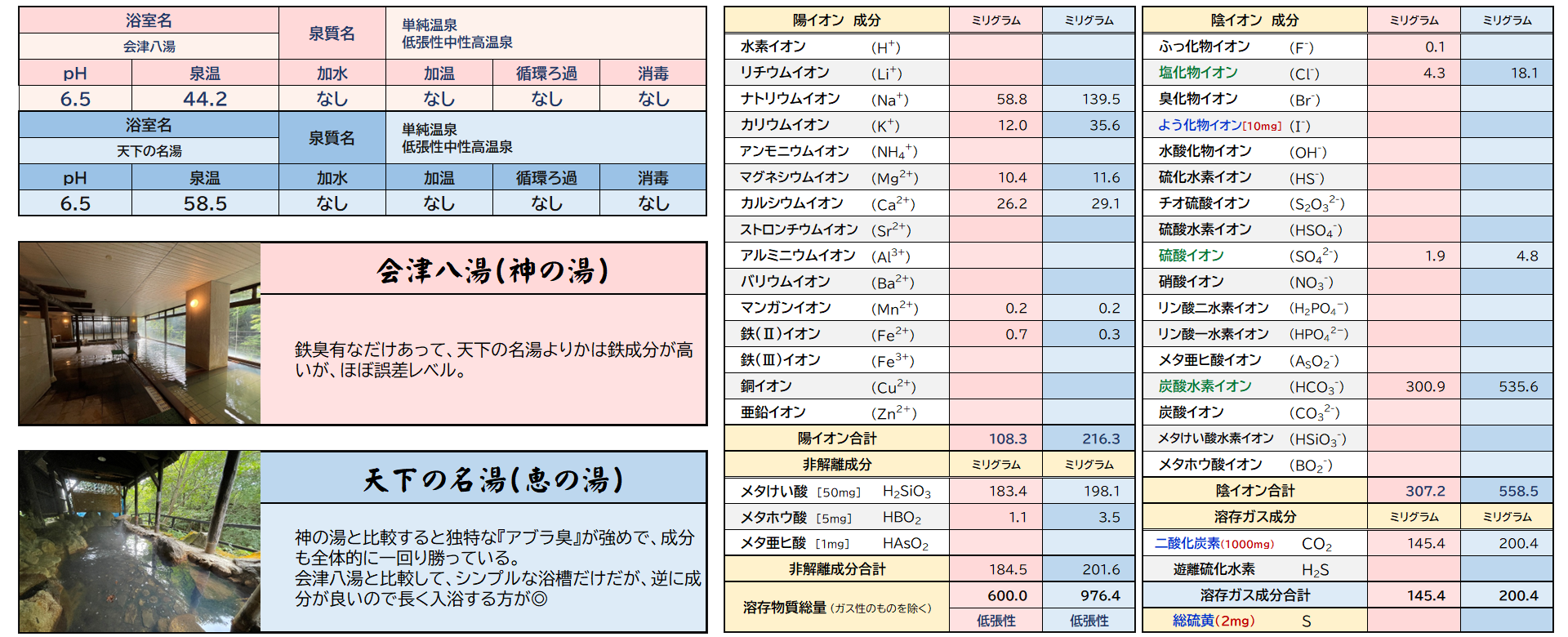 イチオシ単純温泉完全源泉かけ流し猪苗代温泉福島県 スキー場岩風呂横向温泉露天風呂 イチオシ 2025.09.262025.10.03 森の旅亭 マウント磐梯 番号 154 県市 猪苗代町 基本情報 成分表1 成分表2 成分表3 成分表4 成分表5 総評