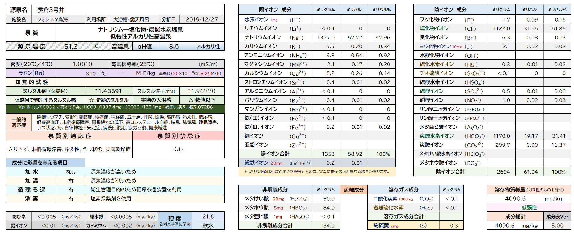 というのも、『フォレスタ鳥海』という秋田の温泉ホテルの成分表が『ヌルヌル値50超え』というとんでもない数値が出てしまったからですね。